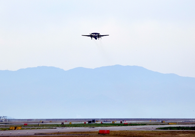 米海軍艦載機 E-2D ホークアイ 早期警戒機、601番機が旋回(6周目) |