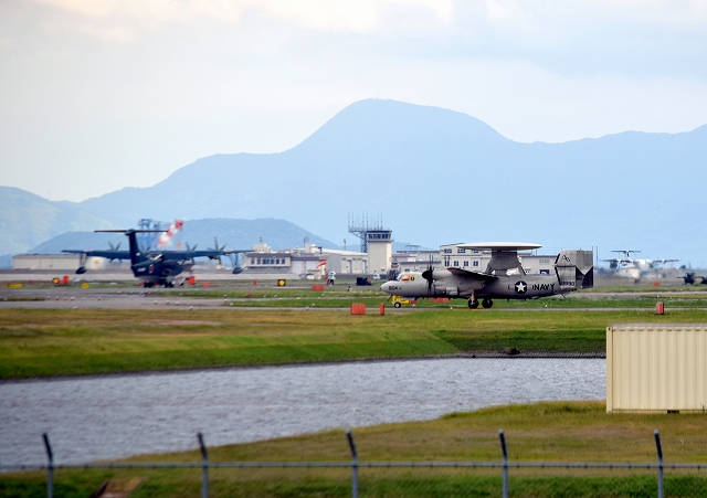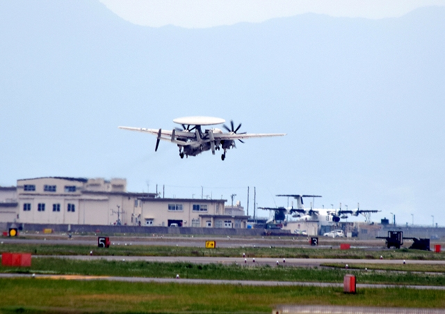 米海軍艦載機 E-2D ホークアイ 早期警戒機、603番機が離陸 |