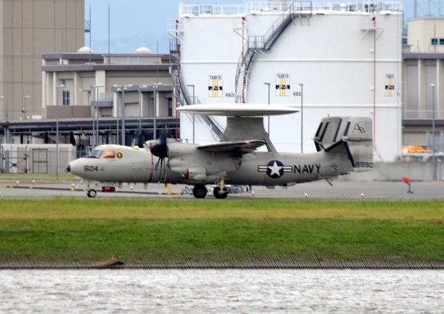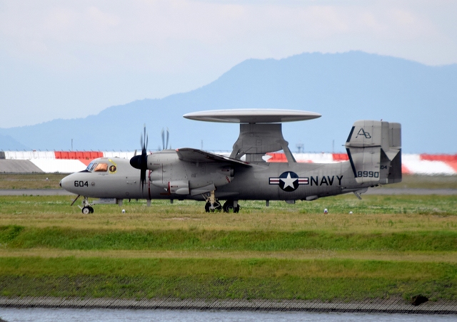米海軍艦載機 E-2D ホークアイ 早期警戒機、604番機も動きます。 |