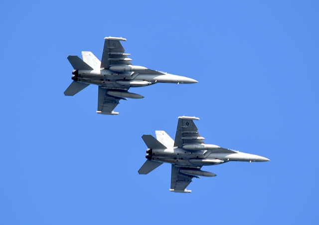 米海軍艦載機 EA-18G グラウラー 電子戦機(三沢基地)、NL、544番機、541番機が戻ってきました。15時01分に離陸した機。1時間27分かかっています。 |