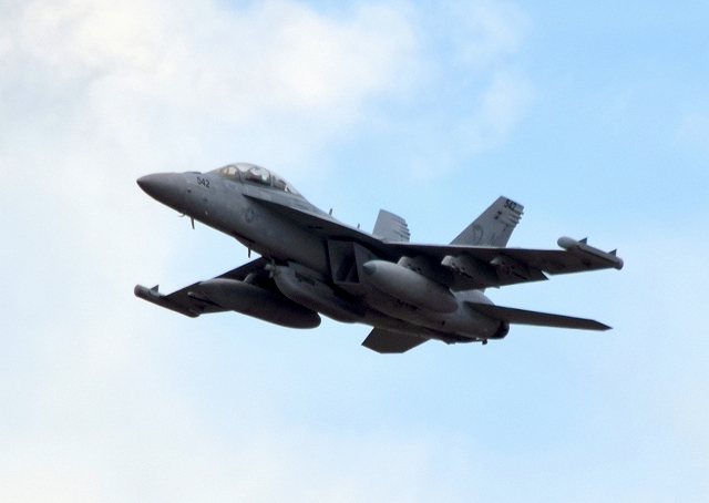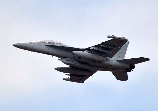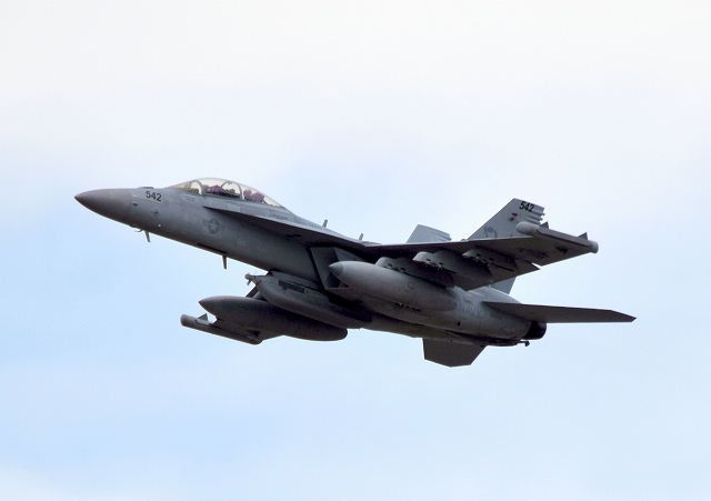 米海軍艦載機 EA-18G グラウラー 電子戦機(三沢基地)、NL、542番機が離陸 |