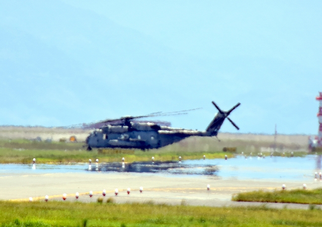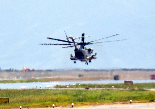 米海兵隊 CH-53E 重輸送ヘリ スーパースタリオン(普天間基地)が離陸 |