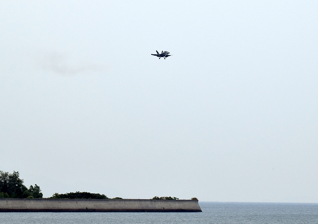 米海兵隊 FA-18D ホーネット 戦闘攻撃機(岩国基地)、DT、01番機が着陸 11時23分に離陸した、という機ですね。 |