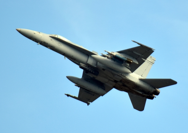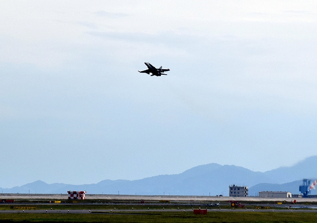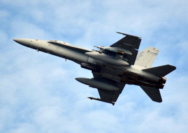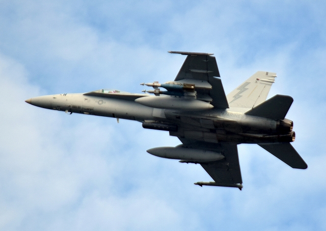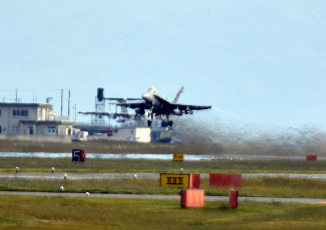 米海兵隊 FA-18C ホーネット 戦闘攻撃機(岩国基地)、DW、01番機が離陸 |