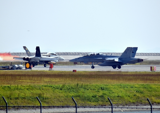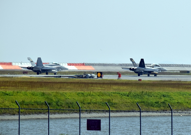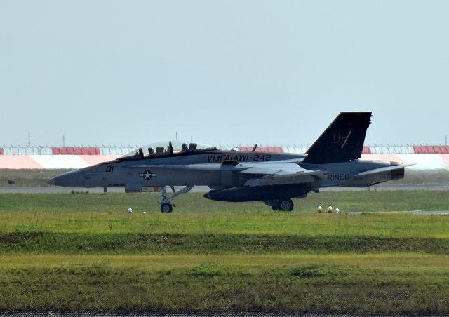 米海兵隊 F/A-18D ホーネット 戦闘攻撃機(岩国基地)、DT、01番機、11番機が走ります |