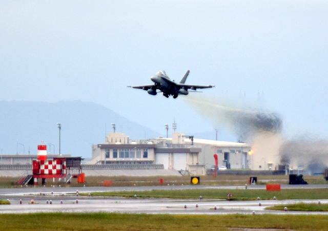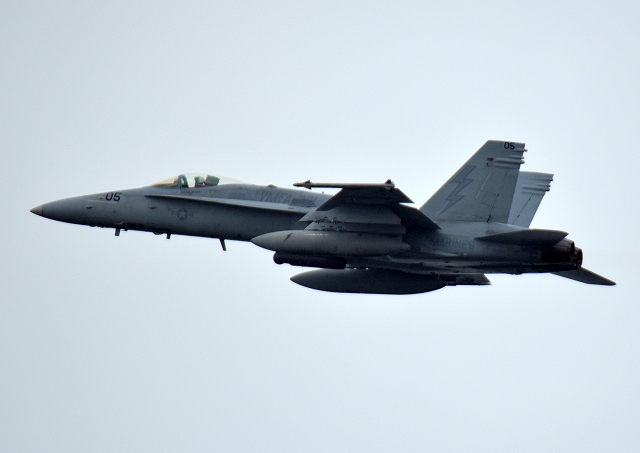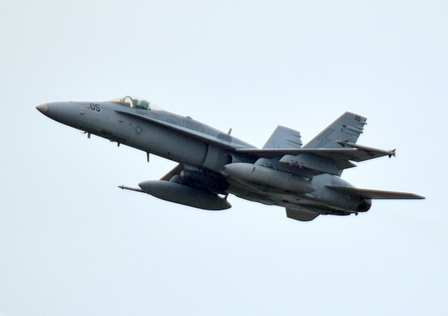 米海兵隊 FA-18C ホーネット 戦闘攻撃機(岩国基地)、DW、05番機が離陸 |