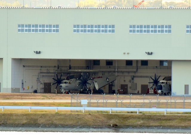 米海軍艦載機 E-2D ホークアイ 早期警戒機(岩国基地)、600番機、C-2A 空母連絡機 グレイハウンド(厚木基地)、30番機 |