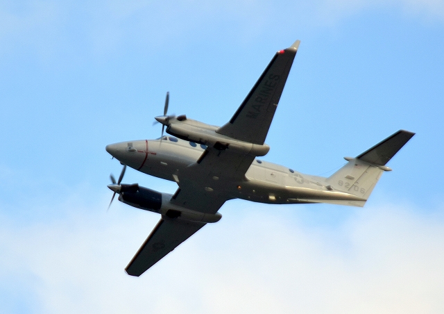 米海兵隊 UC-12W ヒューロン 輸送機(岩国基地)、8206番機がまた出てきて離陸 |