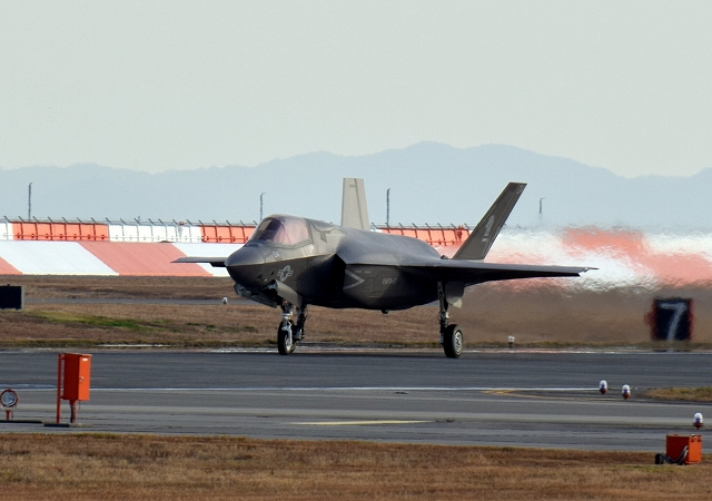 米海兵隊 F-35B ステルス 戦闘機(岩国基地)、VK、04番機が着陸 |