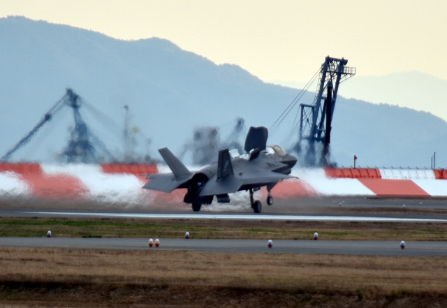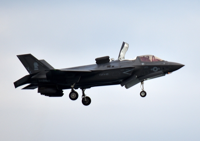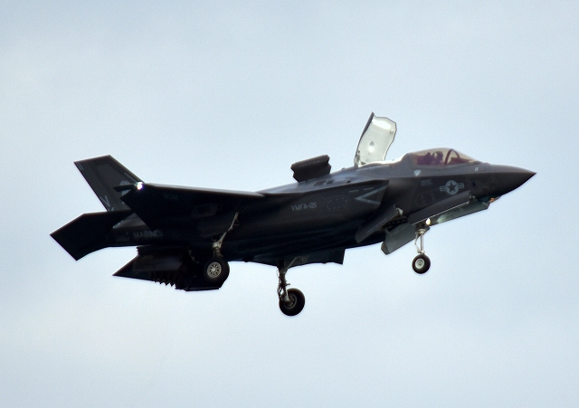 米海兵隊 F-35B ステルス 戦闘機(岩国基地)、VK、11番機が着陸 |