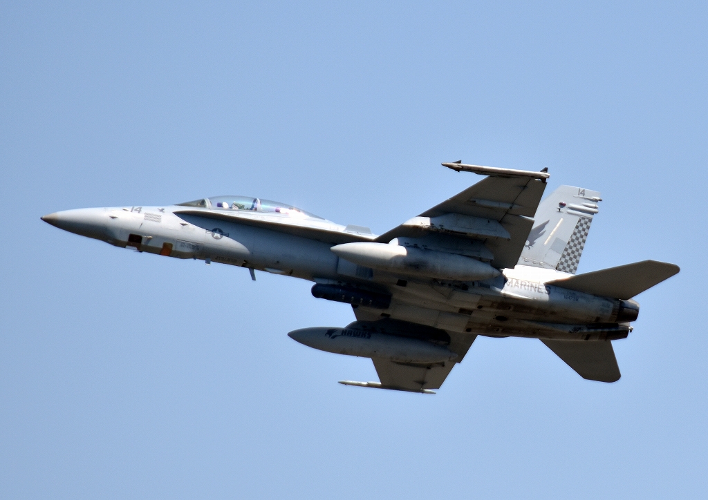 米海兵隊 F/A-18D ホーネット 戦闘攻撃機(岩国基地)、ED、14番機が離陸