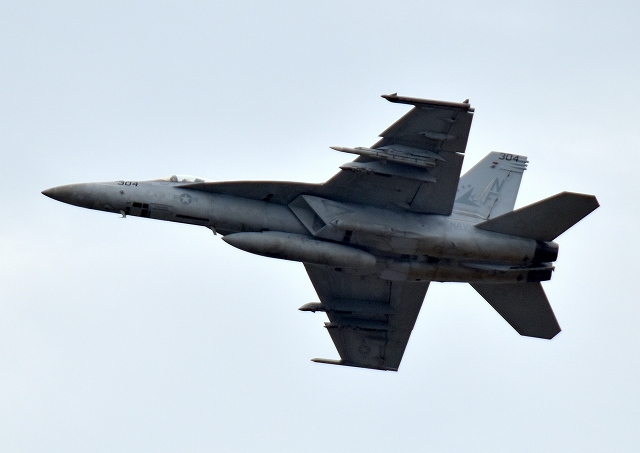 米海軍艦載機 F/A-18E スーパーホーネット 戦闘攻撃機(岩国基地)、NF、304番機が離陸 |