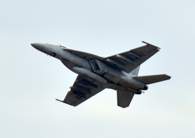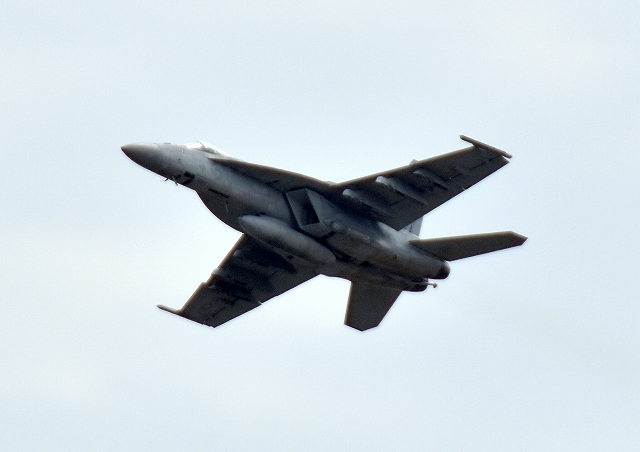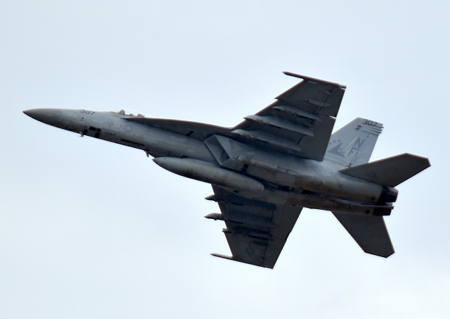 米海軍艦載機 F/A-18E スーパーホーネット 戦闘攻撃機(岩国基地)、NF、307番機が離陸 |