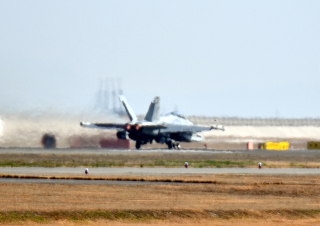 米海軍艦載機 EA-18G グラウラー 電子戦機(岩国基地)、NF、501番機、502番機、505番機が離陸 |