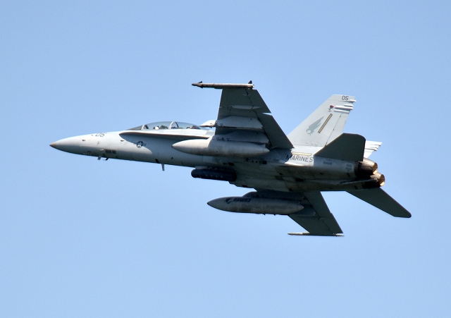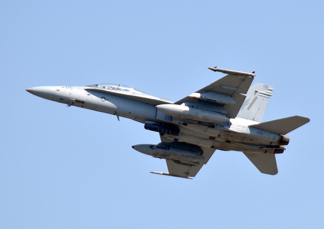 米海兵隊 F/A-18D ホーネット 戦闘攻撃機(岩国基地)、ED、05番機が離陸 |