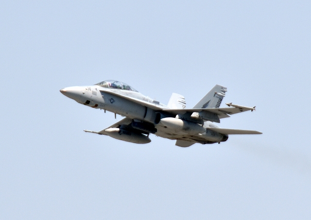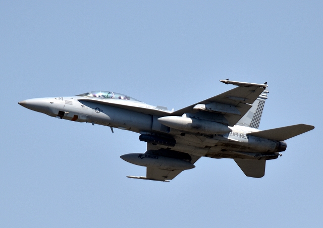 米海兵隊 F/A-18D ホーネット 戦闘攻撃機(岩国基地)、ED、14番機が離陸 |