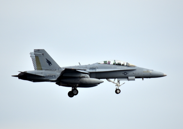 米海兵隊 F/A-18D ホーネット 戦闘攻撃機(岩国基地)、ED、01番機が着陸