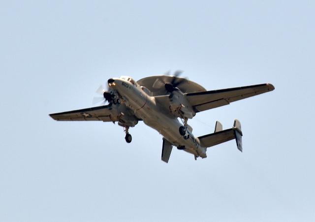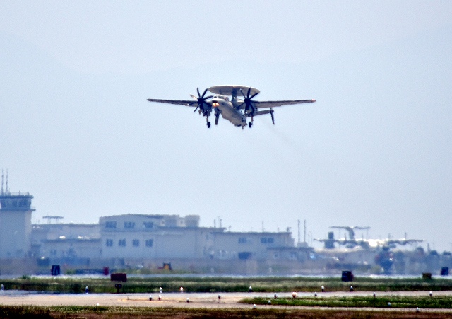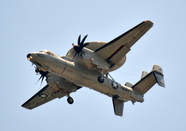 米海軍艦載機 E-2D ホークアイ 早期警戒機(岩国基地)、603番機が離陸 |
