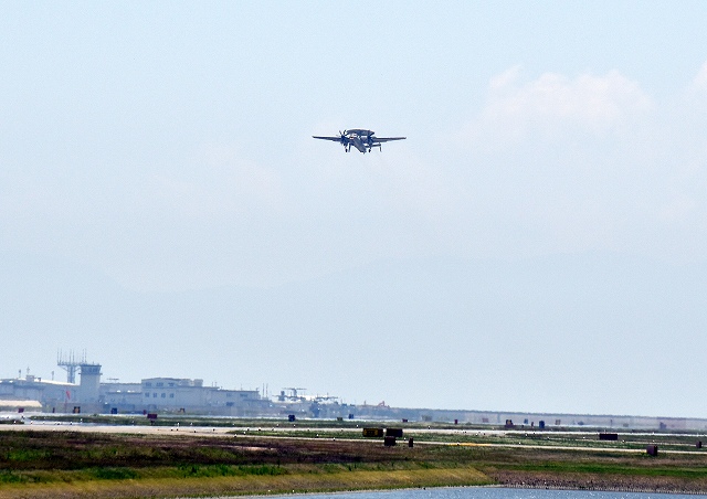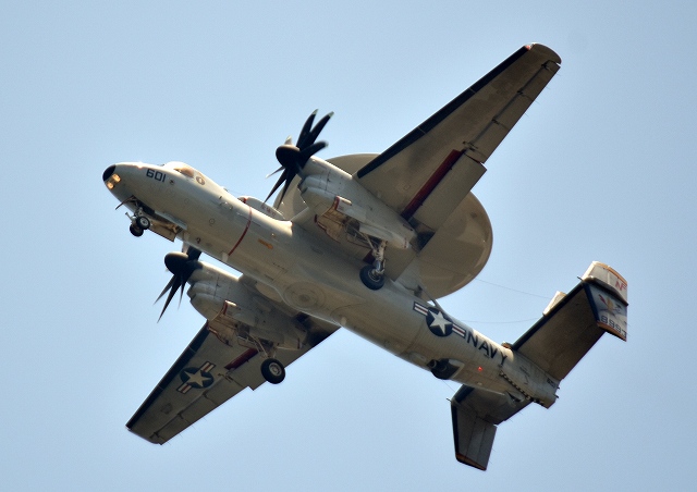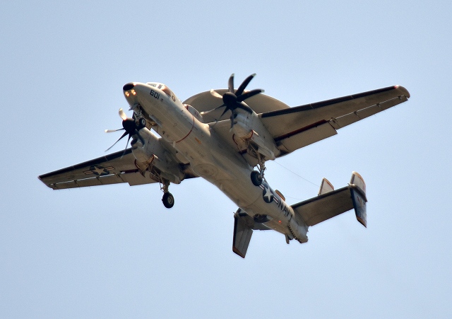 米海軍艦載機 E-2D ホークアイ 早期警戒機(岩国基地)、600番機が離陸 |