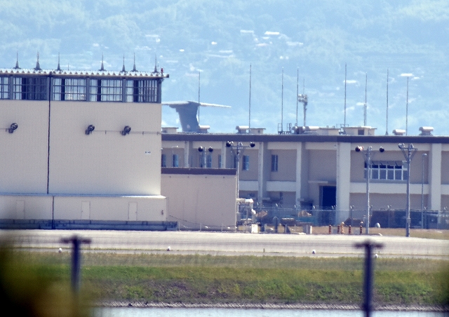 米空軍 C-4 大型輸送機 ギャラクシーの尾翼が見えます。 |