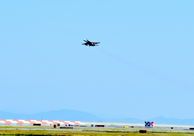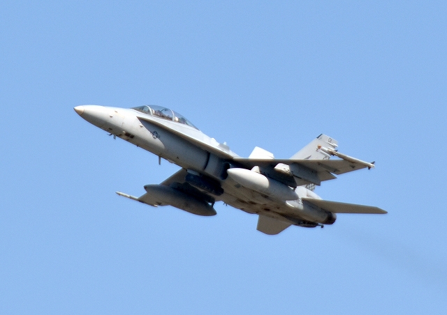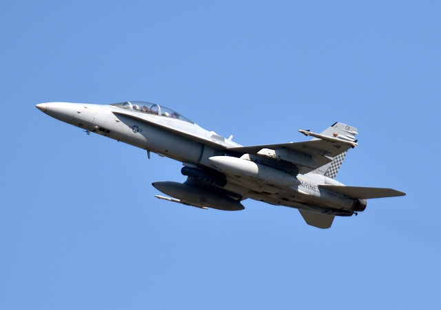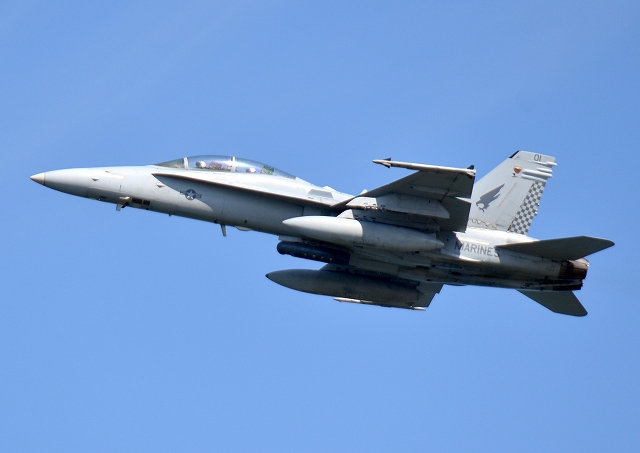 米海兵隊 F/A-18D ホーネット 戦闘攻撃機(岩国基地)、ED、01番機が離陸 |