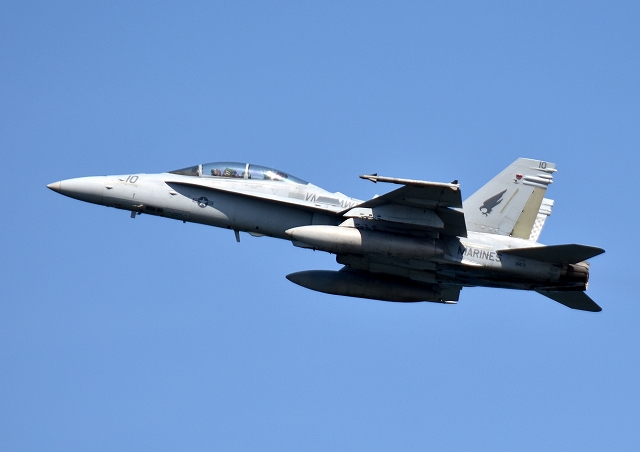 米海兵隊 F/A-18D ホーネット 戦闘攻撃機(岩国基地)、ED、10番機が離陸 |
