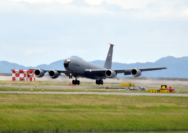 米空軍 KC‐135 空中給油機 ストラトタンカー(嘉手納基地)がタッチアンドゴーして旋回(3周目) |