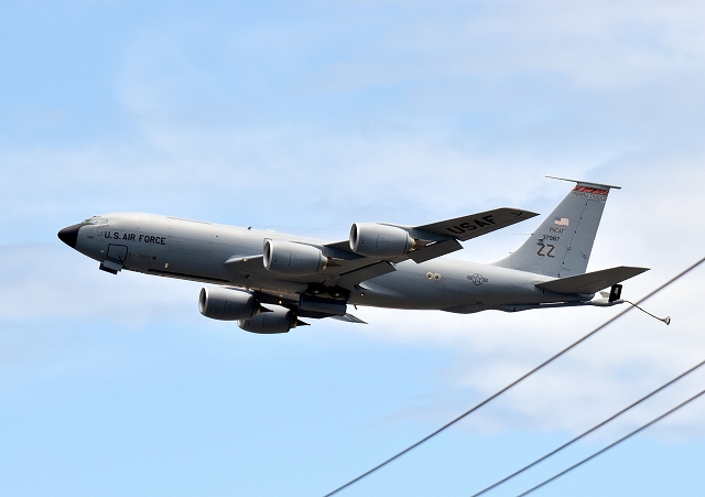 米空軍 KC‐135 空中給油機 ストラトタンカー(嘉手納基地)がタッチアンドゴーして旋回(4周目) |
