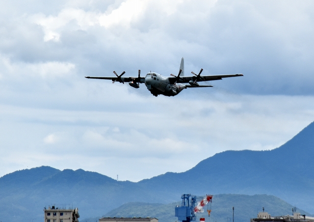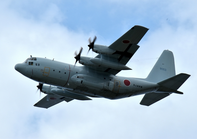 海上自衛隊 C-130R 輸送機 ハーキュリーズ(厚木基地)、53番機が離陸 |
