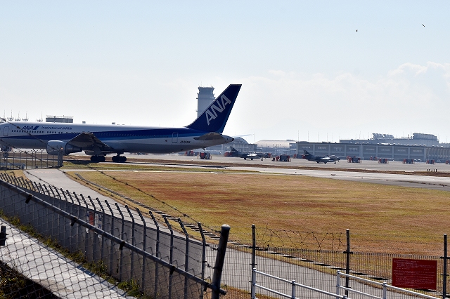 2133-1、2018年11月4日(日)ホーカーハンターの前を全日空旅客機定期便、離陸、着陸(1)~(10)