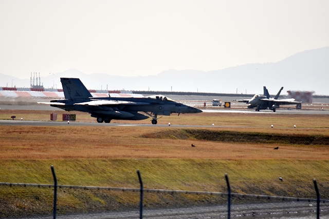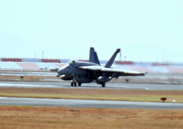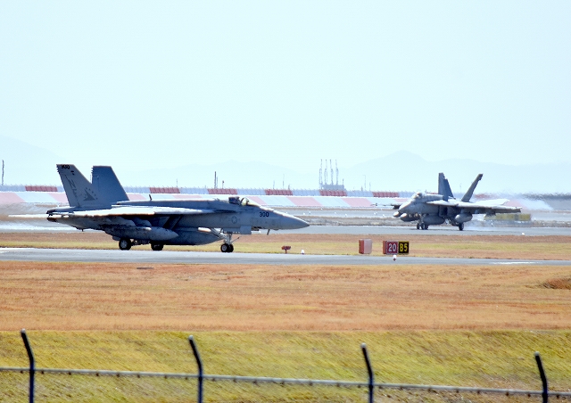米海軍艦載機 F/A-18E スーパーホーネット 戦闘攻撃機(岩国基地)、NF、305番機 8月16日(朝)に離陸した機です。 |