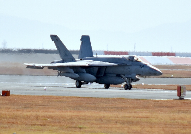 米海軍艦載機 F/A-18E スーパーホーネット 戦闘攻撃機(岩国基地)、NF、304番機 8月16日(朝)に離陸した機です。 |