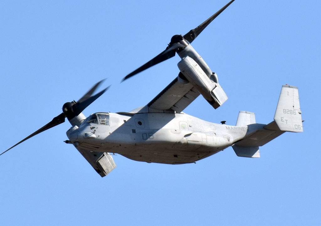 2019年3月19日(火)米海兵隊 MV-22B オスプレイ(普天間基地)、ET、06番機が離陸、旋回