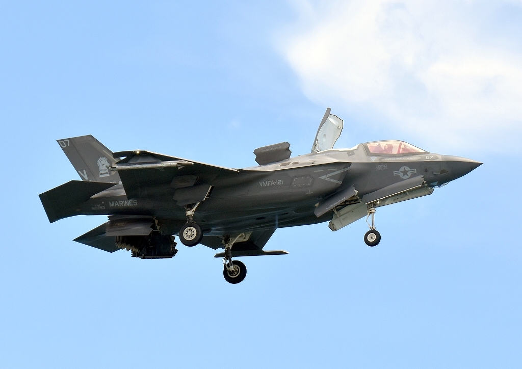 米海兵隊 F-35B ステルス 戦闘機(岩国基地)、VK、07番機が着陸