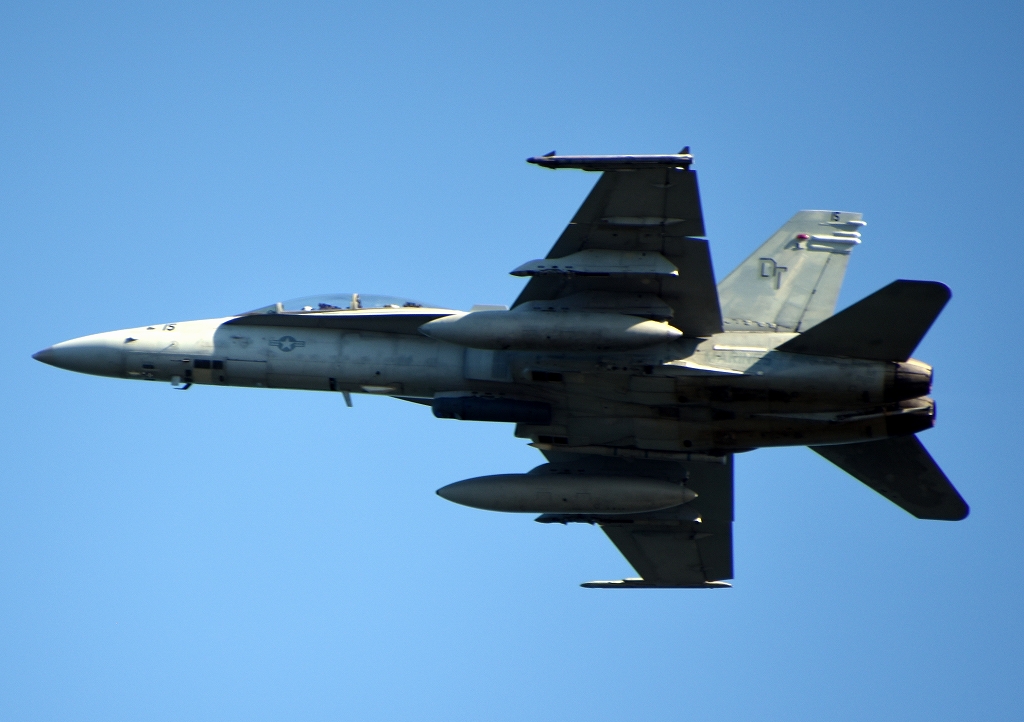 米海兵隊 F/A-18D ホ ーネット 戦闘攻撃機(岩国基地)、DT、15番機が旋回