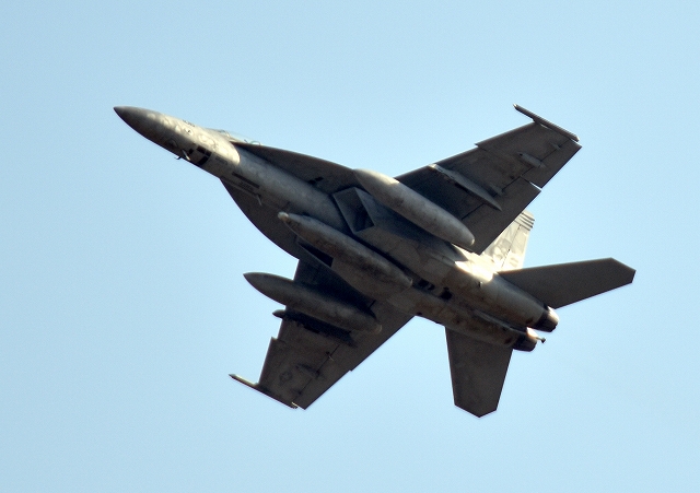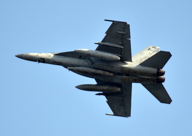 米海軍艦載機 F/A-18F スーパーホーネット 戦闘攻撃機(岩国基地)、NF、106番機が離陸 |