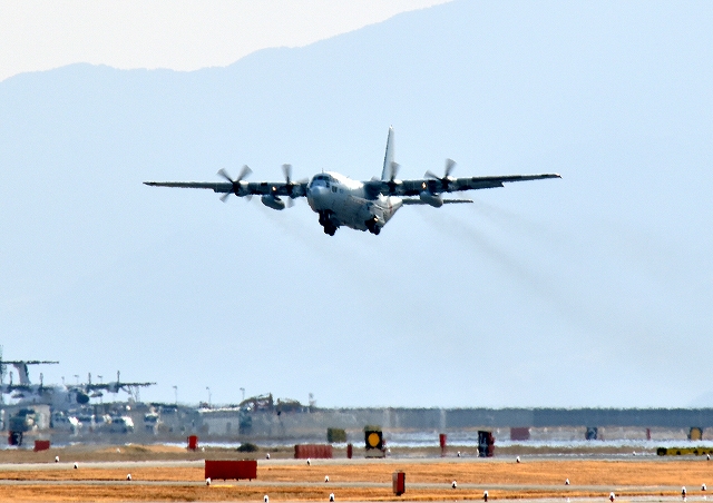 海上自衛隊 C-130R 輸送機 ハーキュリーズ(厚木基地)、9052番機が離陸 |