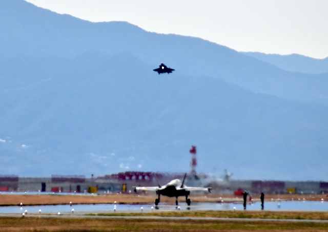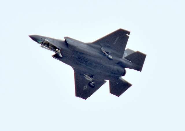 米海兵隊 F-35B ステルス 戦闘機(岩国基地)、VK、10番機が旋回 |