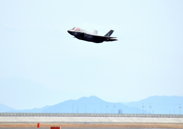 米海兵隊 F-35B ステルス 戦闘機(岩国基地)、VK、15番機が離陸 |