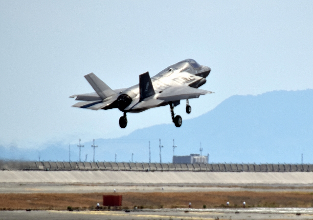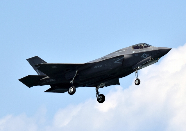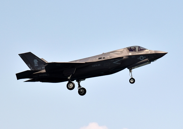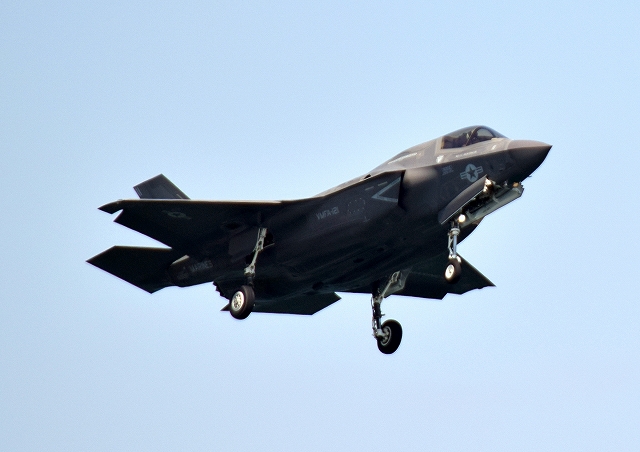 米海兵隊 F-35B ステルス 戦闘機(岩国基地)、VK、11番機が着陸 |