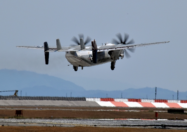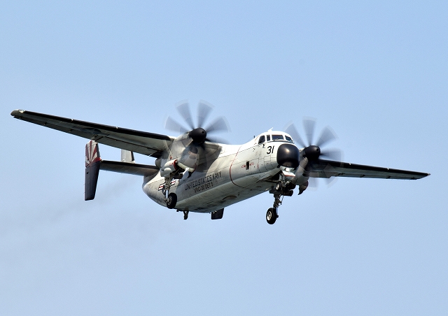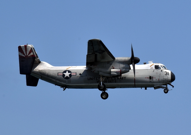 米海軍艦載機 C-2A グレイハウンド 空母連絡機(岩国基地)、31番機が旋回(3周目) |