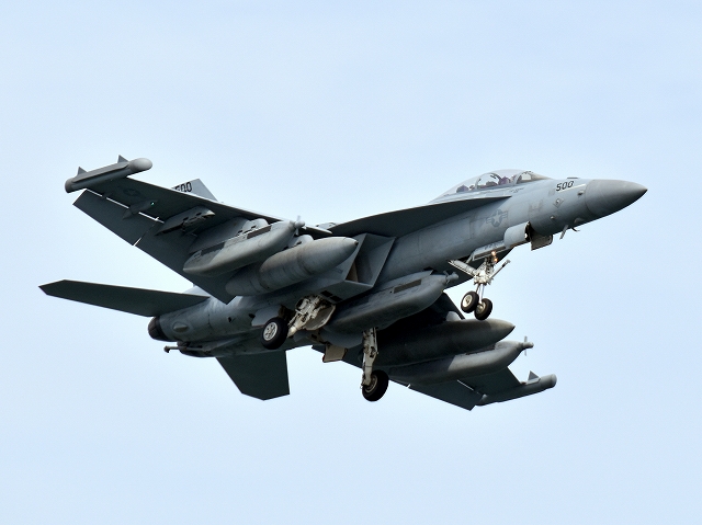 米海軍艦載機 EA-18G グラウラー 電子戦機(岩国基地)、NF、500番機が旋回(2周目) |