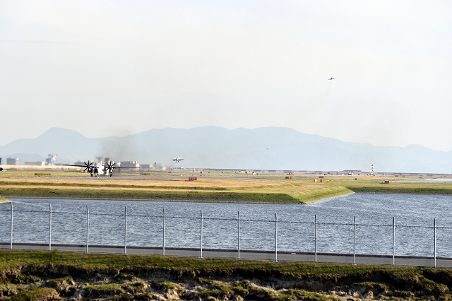 米海軍艦載機 EA-18G グラウラー 電子戦機(岩国基地)、NF、505番機、506番機が離陸 |