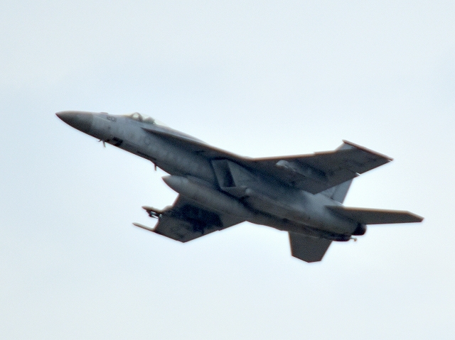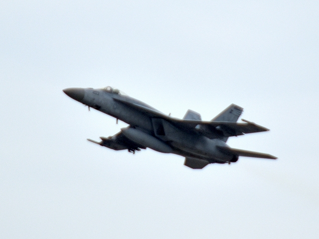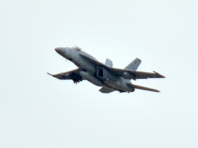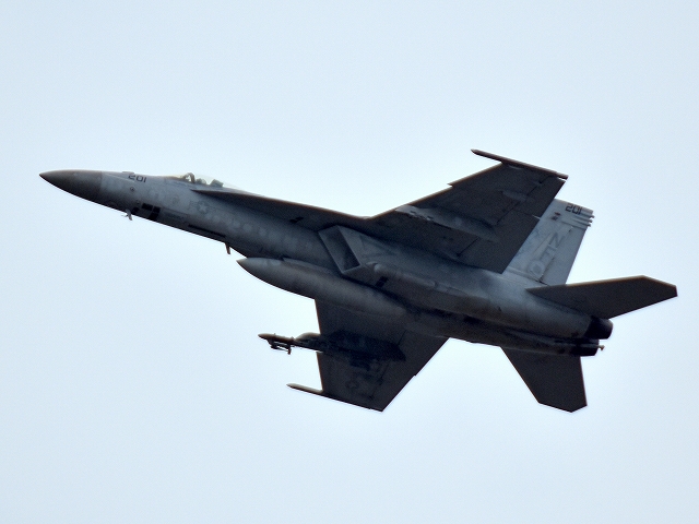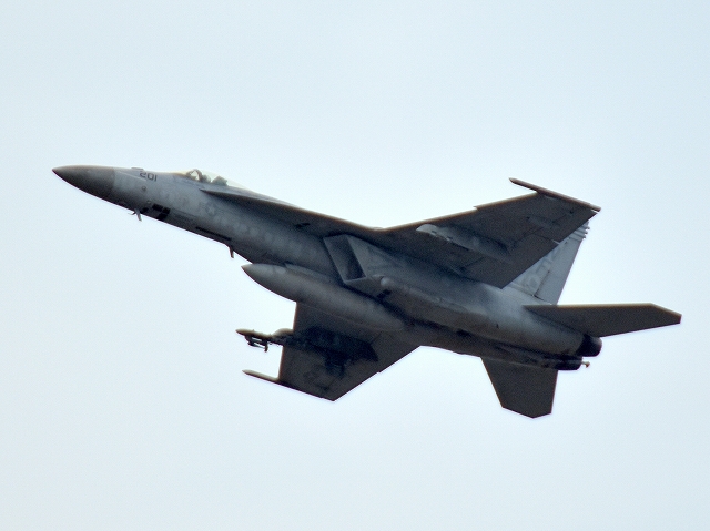 米海軍艦載機 F/A-18E スーパーホーネット 戦闘攻撃機(岩国基地)、NF、201番機が離陸 |