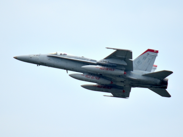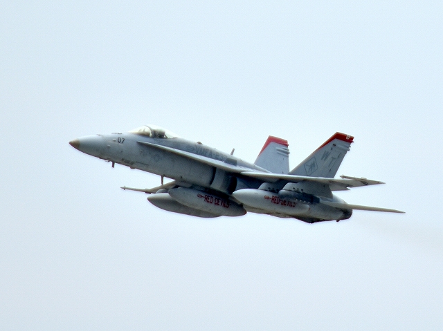 米海兵隊 F/A-18C ホーネット 戦闘攻撃機(岩国基地)、WT、07番機が離陸 |