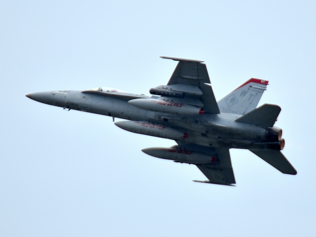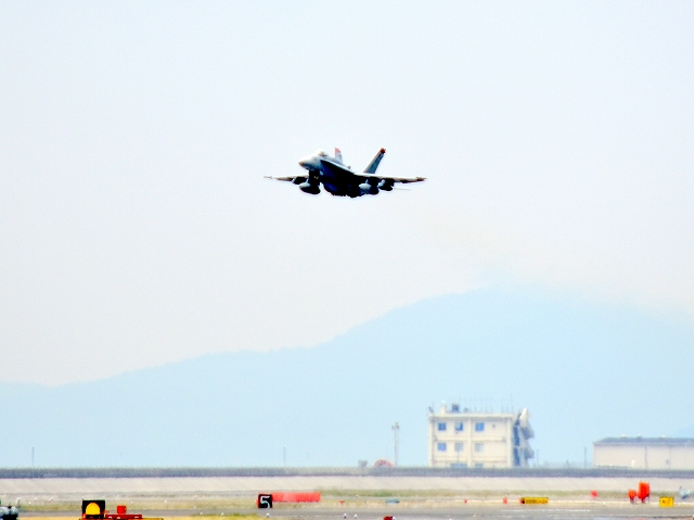 米海兵隊 F/A-18C ホーネット 戦闘攻撃機(岩国基地)、WT、06番機が離陸 |