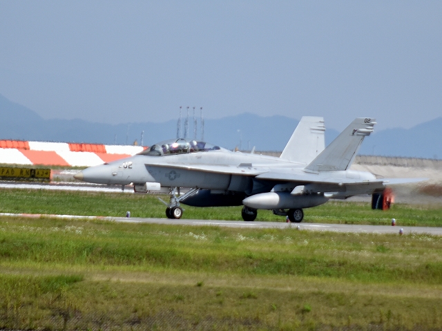 米海兵隊 F/A-18D ホーネット 戦闘攻撃機(岩国基地)、DT、02番機が離陸。 |