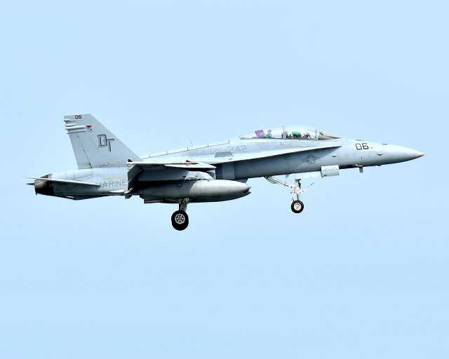 米海兵隊 F/A-18D ホーネット 戦闘攻撃機(岩国基地)、DT、06番機が旋回(6周目) |