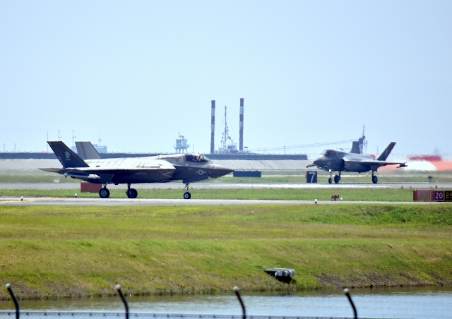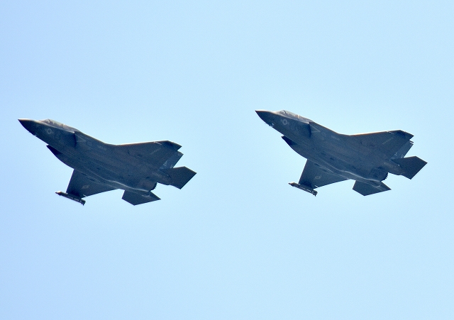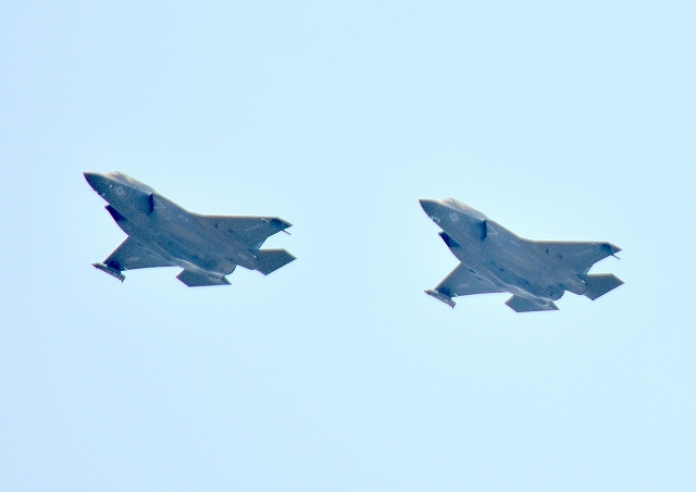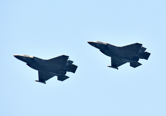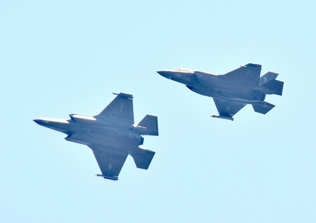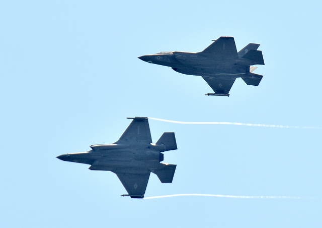 米海兵隊 F-35B ステルス 戦闘機(岩国基地)、VK、07番機、11番機が旋回 |