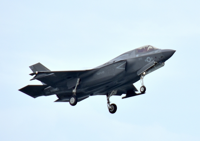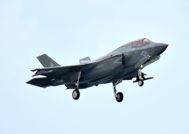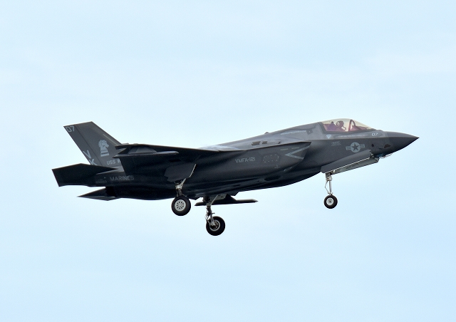 米海兵隊 F-35B ステルス 戦闘機(岩国基地)、VK、15番機が着陸 |